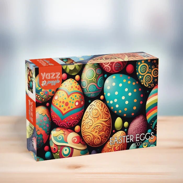 Celebrate the spirit of spring with the Easter Eggs 1000 Piece Jigsaw Puzzle by Yazz Puzzles! This vibrant jigsaw puzzle for adults and older kids showcases an assortment of beautifully decorated Easter eggs in bold and festive colors. The intricate patterns, swirls, and designs on each egg make this puzzle a delightful challenge for puzzlers of all ages. Perfect for enjoying during the Easter season or any time of year, this puzzle is sure to brighten your day! ๐ธโจ