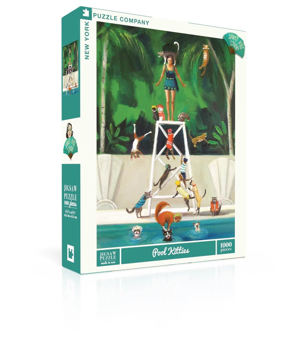Pool Kitties 1000 Piece Cat Jigsaw Puzzle by New York Puzzle Company – Art by Janet Hill