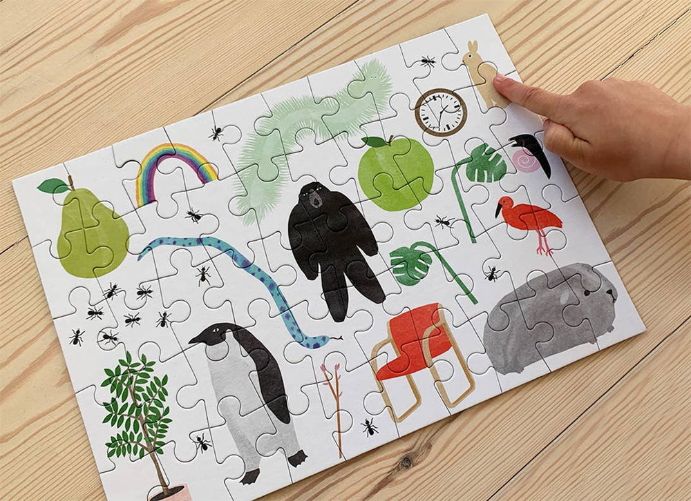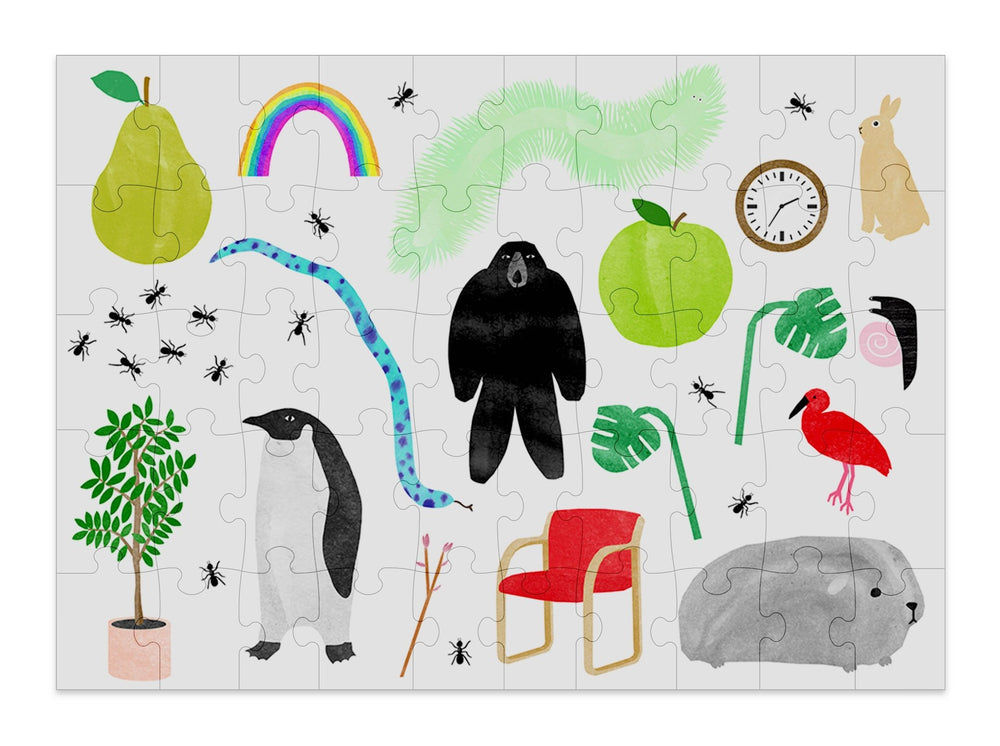 Bright, playful, and full of delightful surprises, this cheerful jigsaw puzzle is made to spark curiosity and conversation 🐧🌈. Jumble is part of the Cloudberries Newbie Puzzles range and features a joyful mix of animals, plants, and everyday objects, from tiny ants and leafy greens to rainbows and a sneaky penguin. Designed with bold blocks of color and a beautifully simple layout, this picture puzzle helps build confidence while encouraging little puzzlers to explore the weird and wonderful world around them. With chunky, easy-to-handle pieces, this 50 piece jigsaw puzzle is just as enjoyable for relaxed adult puzzling as it is for kids.