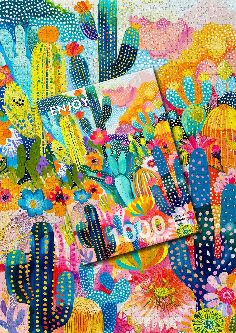 Step into a desert dream with Enjoy PuzzlesCacti Land 1000 Piece Jigsaw Puzzle! 🌵☀️ This vibrant picture puzzle captures a colorful landscape filled with whimsical cactus plants, blooming flowers, and a playful mix of desert hues. Every piece radiates warmth and creativity, turning your puzzle time into a joyful escape beneath the desert sun. Perfect for fans of colorful jigsaw puzzles, nature lovers, and anyone who enjoys beautiful puzzles that bring the outdoors inside. 🧩🌺