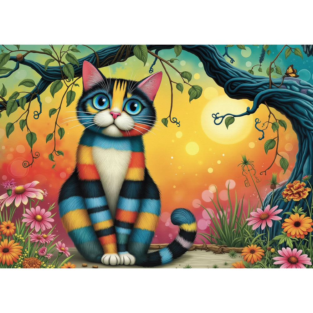 Bright, playful, and full of personality, this eye-catching jigsaw puzzle features an adorable cat with bold rainbow stripes set against a dreamy garden backdrop 🐱🌈. With glowing colors, expressive eyes, and whimsical details, this picture puzzle is pure joy from the first piece to the last. Designed to delight cat lovers and art fans alike, this 1000 piece jigsaw puzzle offers a satisfying challenge while immersing you in a world of imagination and color. Perfect for relaxing evenings, creative escapes, or anyone who loves cat jigsaw puzzles and colorful jigsaw puzzles with a magical twist.