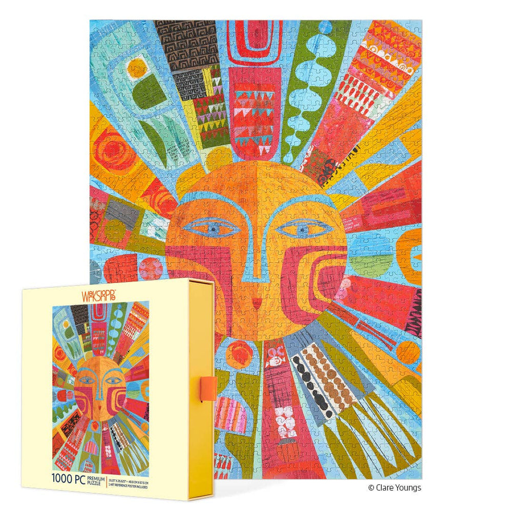 Bring vibrant optimism to your puzzle table with this radiant 1000-piece jigsaw puzzle illustrated by Clare Youngs 🌞🎨✨. A glowing sun with a warm, expressive face radiates outward in bold beams of color—fiery reds, vivid oranges, sunny yellows, and cool blues—all filled with playful geometric patterns, textured shapes, and folk-art charm. Every ray offers a unique burst of creativity, making the entire artwork feel joyful, energizing, and full of artistic personality. This dazzling design is the perfect way to brighten your space and your spirit, piece by piece.