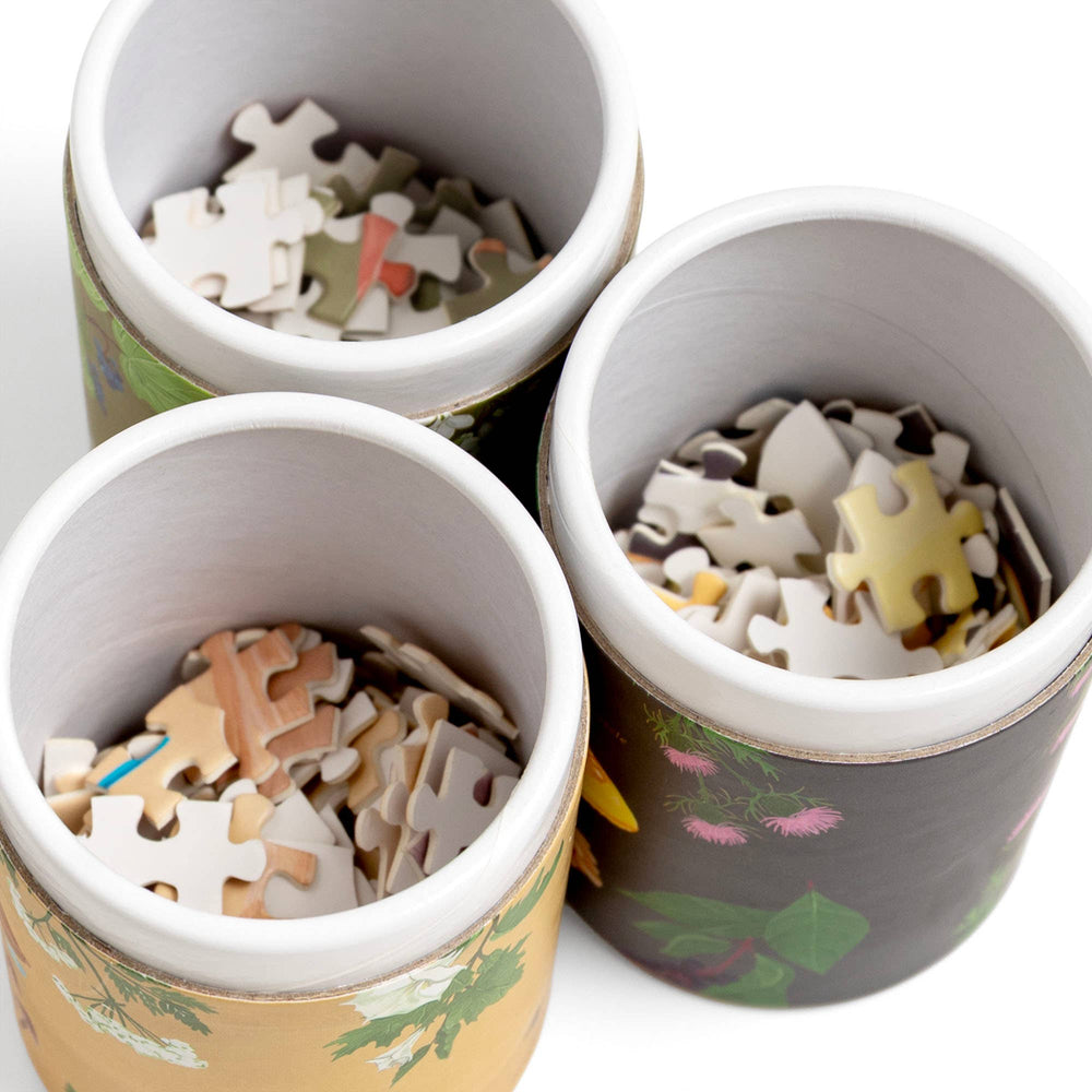 Midnight Flora & Fauna offers a relaxing, screen-free activity with a creative twist. The shaped format makes each puzzle feel special, while the compact size is perfect for gifting, travel, or quick cozy puzzle sessions. Beautifully packaged in individual cylinder boxes, this 1Canoe2 jigsaw puzzle set is a charming gift for kids, adults, and anyone who finds magic in the forest.