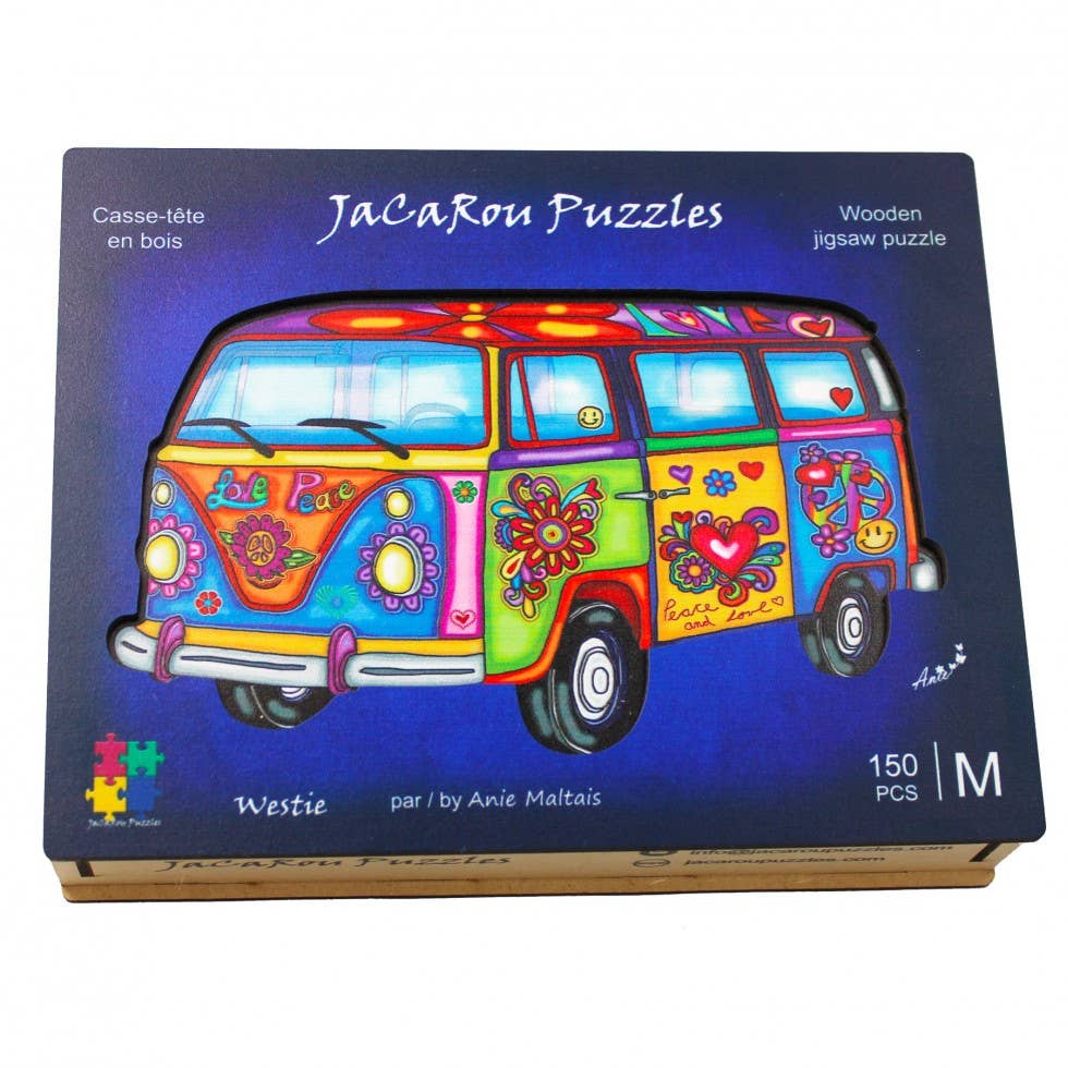 Westie 150 Piece Wooden Jigsaw Puzzle by JaCaRou Puzzles - Groovy VW Westfalia Design is backordered and will ship as soon as it is back in stock.